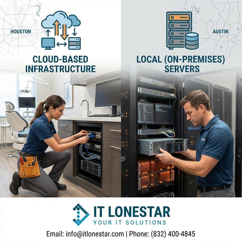 IT LONESTAR Solution helps Houston and Austin dental clinics choose and implement the right mix of cloud and on‑premises infrastructure based on compliance, budget, and workflow.