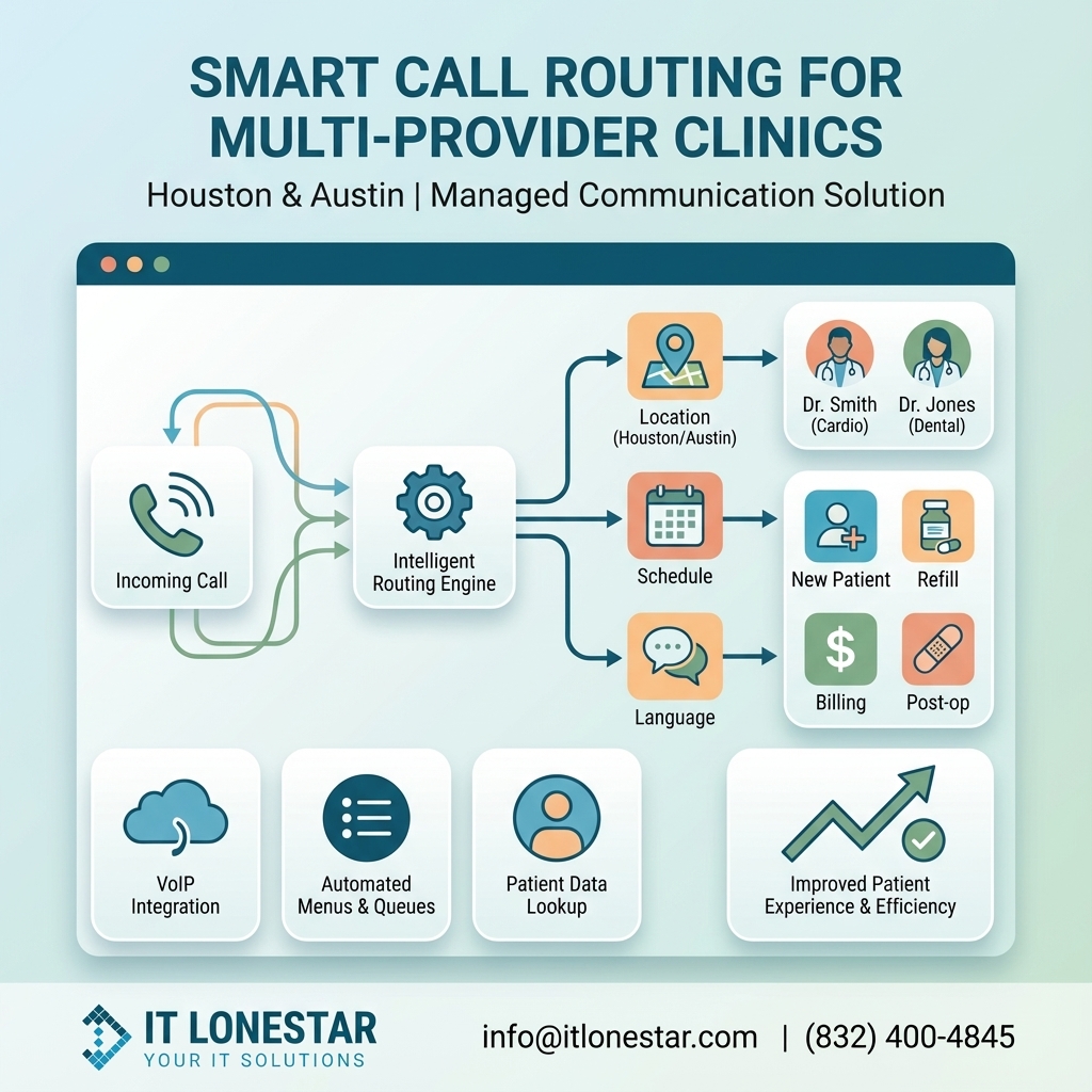 IT LONESTAR fixes this problem by designing and deploying a Smart Call Routing architecture tailored to each clinic in Houston and Austin.